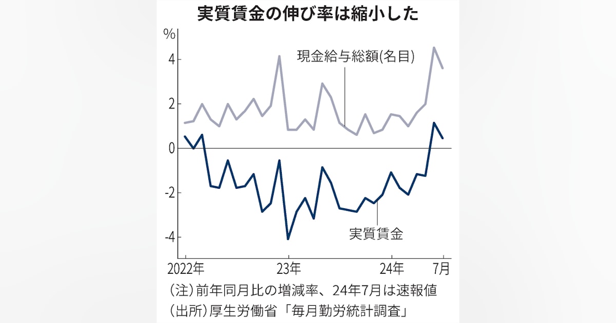 【毎月勤労統計調査】7月実質賃金0.4%増、2カ月連続プラス 夏ボーナス伸び - 日本経済新聞